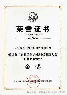 公司榮獲第二屆甘肅省企業(yè)科技創(chuàng)新大賽“科技創(chuàng)新企業(yè)”金獎