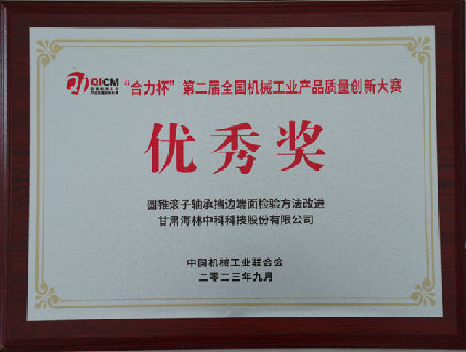 公司“圓錐滾子軸承擋邊端面檢驗方法改進”榮獲“合力杯”第二屆全國機械工業(yè)產(chǎn)品質(zhì)量創(chuàng)新大賽優(yōu)秀獎