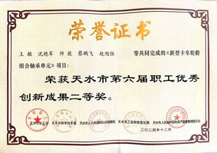 2024年12月海林公司新型卡車輪轂單元組合軸承單元項目榮獲天水市第六屆職工優(yōu)秀創(chuàng)新成果二等獎