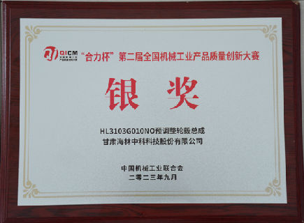 公司“HL3103G010NO預(yù)調(diào)整輪轂總成”榮獲“合力杯”第二屆全國機械工業(yè)產(chǎn)品質(zhì)量創(chuàng)新大賽銀獎