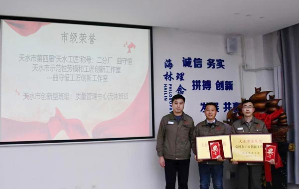 Qu Shouheng Craftsman Innovation Studio of the Plant 2 was awarded the title of Model Worker and Craftsman Innovation Studio of Tianshui City,