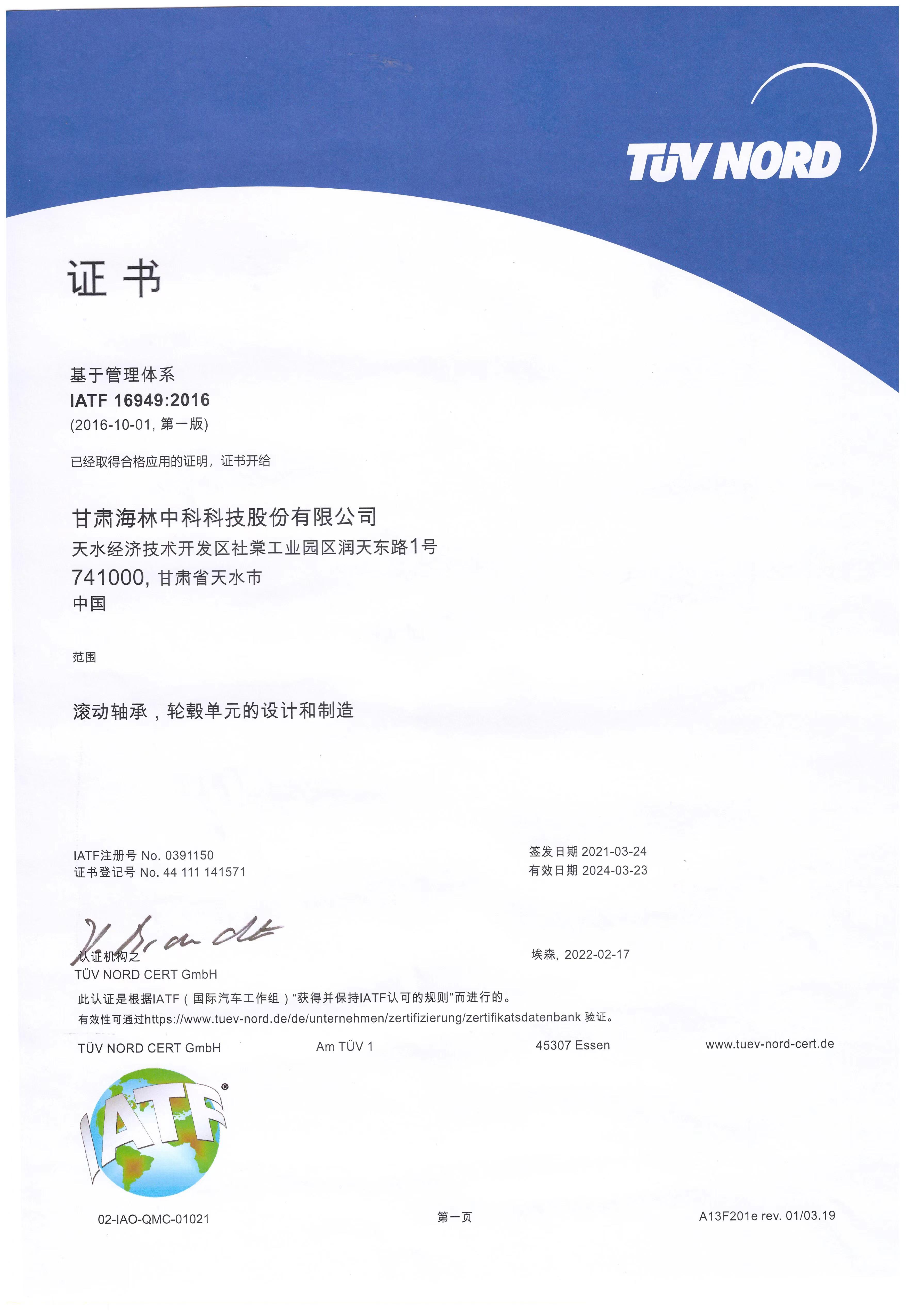 HL passed IATF16949:2016 certifications for standard version in 2017